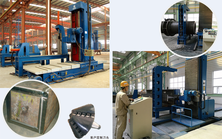 該機用來加工H型鋼、箱型柱和筒體端面,動力頭可調(diào)0-45角度,以銑型鋼的端面坡口。